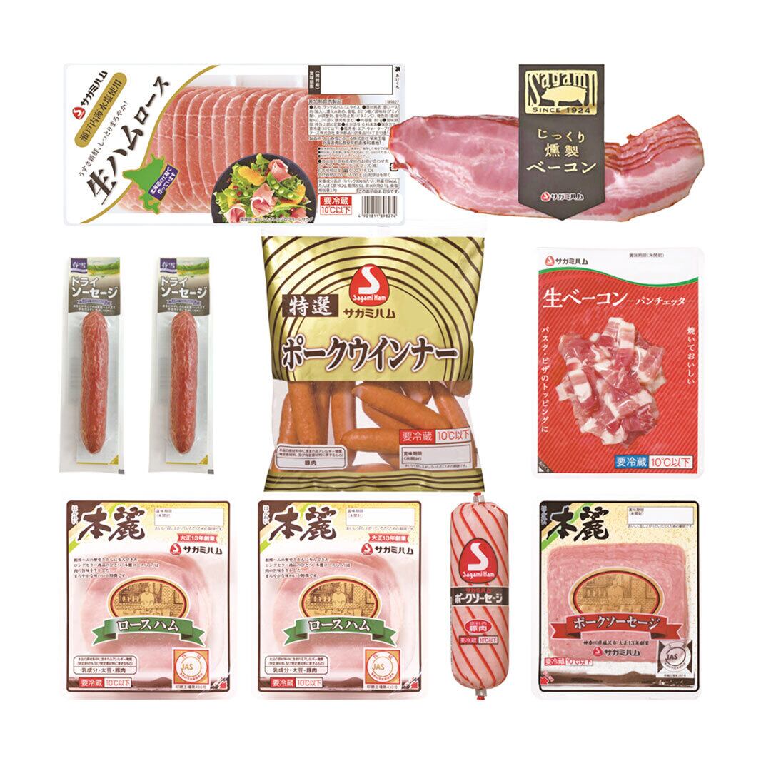 ハム、ソーセージベーコンなど、サガミハムの主力商品を詰め合わせたお得なセットです。料理にぴったり!